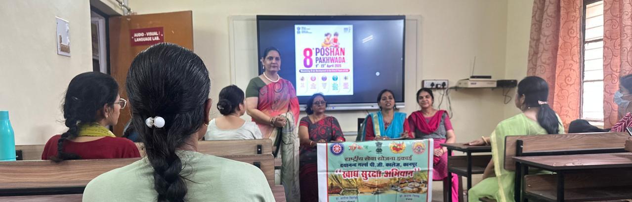 भारतीय स्वरूप संवाददाता कानपुर।20 अप्रैल 2026, दयानंद गर्ल्स पी.जी. कॉलेज, कानपुर में राष्ट्रीय सेवा योजना के तत्वावधान में पोषण पखवाड़ा (8वां संस्करण) के अंतर्गत “स्क्रीन टाइम कम करने में माता-पिता, अभिभावकों एवं समुदाय की भूमिका” विषय पर एक प्रभावी व्याख्यान का आयोजन किया गया। यह कार्यक्रम डॉ. संगीता सिरोही के कुशल निर्देशन में, सेल्फ फाइनेंस डायरेक्टर प्रो. अर्चना वर्मा के मार्गदर्शन में सफलतापूर्वक संपन्न हुआ। मुख्य वक्ता के रूप में रेंजर प्रभारी प्रो. स्वाति सक्सेना ने विद्यार्थियों को अत्यधिक स्क्रीन उपयोग के दुष्प्रभावों तथा उसके समाधान के व्यावहारिक उपायों से अवगत कराया। उन्होंने अभिभावकों एवं समुदाय की सक्रिय भागीदारी को बच्चों के समग्र विकास के लिए अत्यंत आवश्यक बताया।