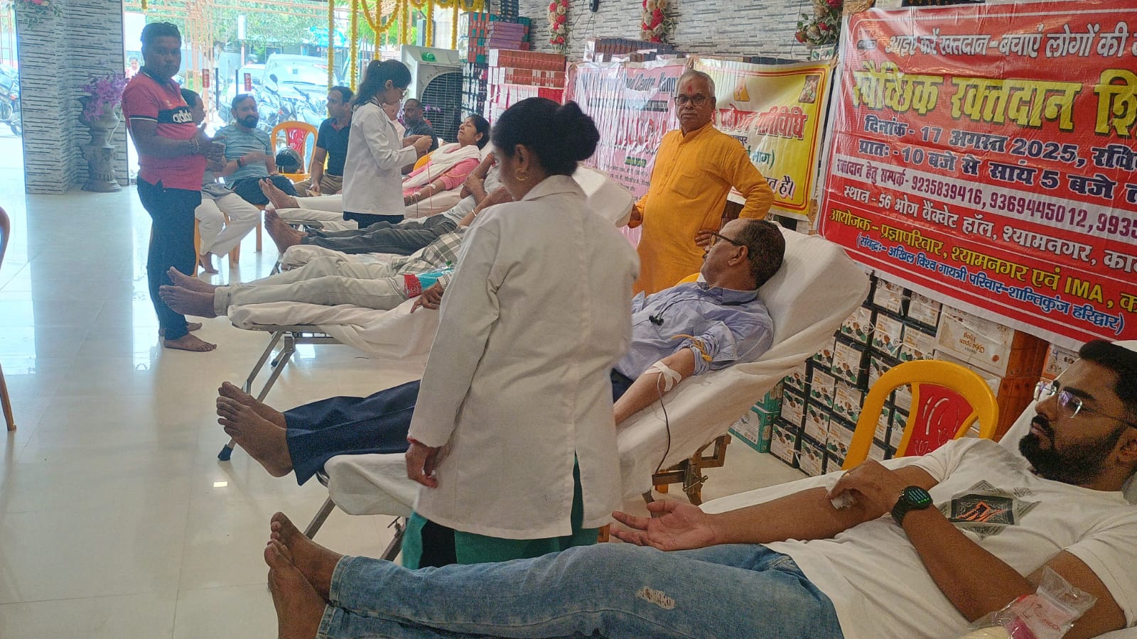 भारतीय स्वरूप संवाददाता कानपुर 18 अगस्त प्रज्ञा परिवार सेवा संस्थान एवं इंडियन मेडिकल एसोसिएशन के संयुक्त तत्वाधान में श्याम नगर स्थित छप्पन भोग बैंक्वेट हाल में रक्त दान हेतु कैंप लगाया गया जिसमें करीब 85 लोगों ने इस महादान में हिस्सा लिया,